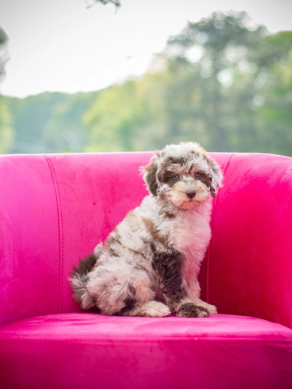 His sweet temperament, striking looks, and unique role as the Aussiedoodle of the group make him the perfect partner to our mamas, helping produce puppies that are as wonderful on the inside as they are on the outside.